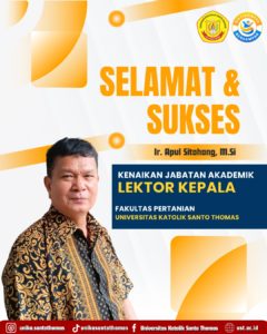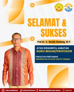 Segenap Keluarga besar Fakultas Pertanian Unika Santo Thomas dengan penuh rasa hormat dan kebanggaan mengucapkan selamat atas diraihnya jabatan Guru besar untuk Prof. Dr. Ir. Nurdin Sitohang. MP. dan Jabatan Akademik Lektor Kepala untuk Ir. Apul Sitohang, M.Si.